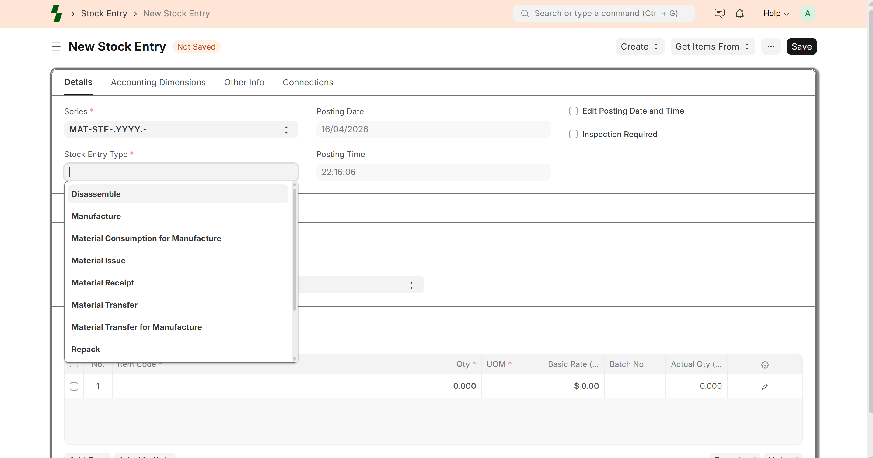 - Go to Inventory → Stock Entry