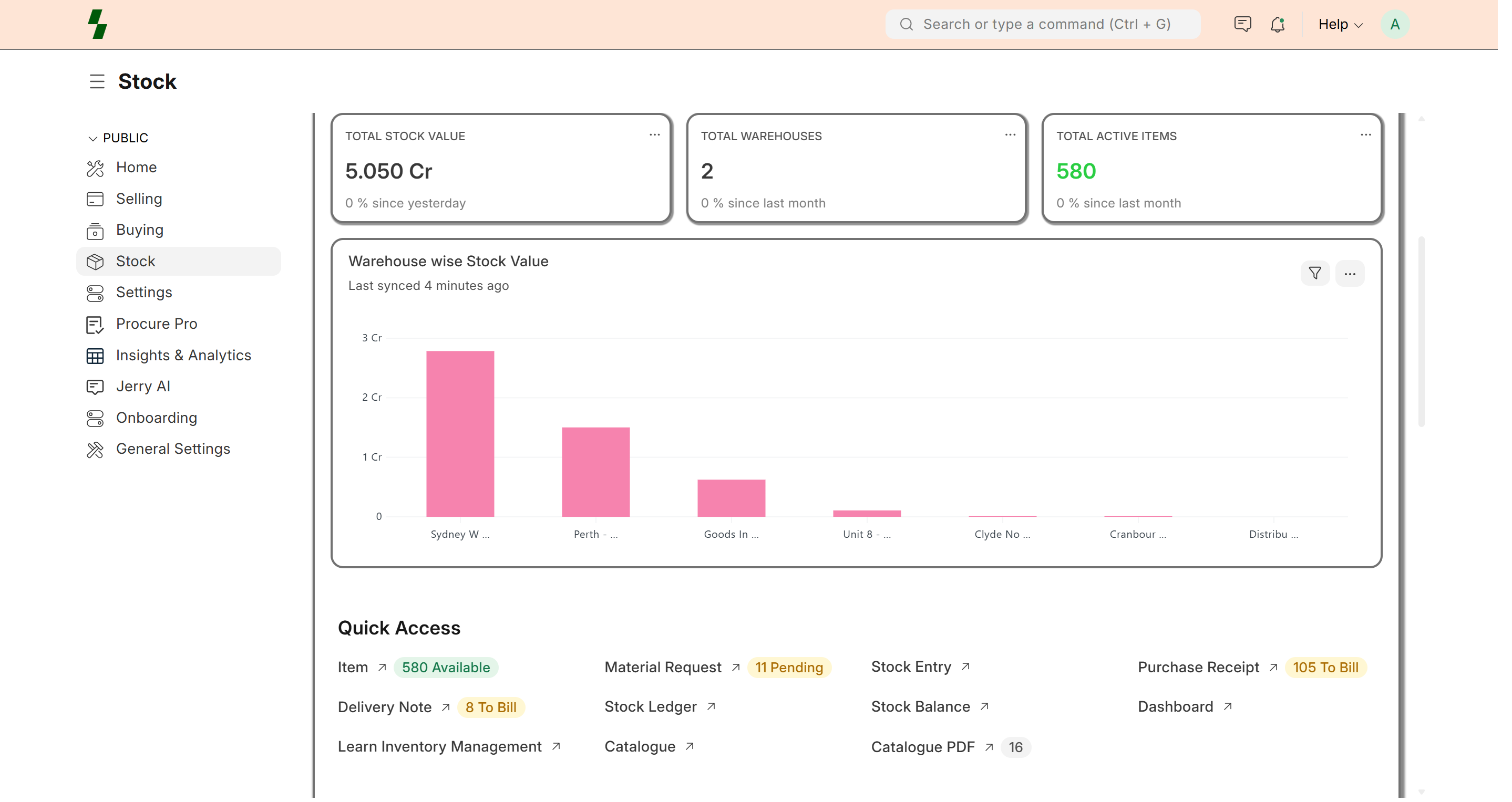 Stock Management helps you track the quantity and movement of items across your warehouses.