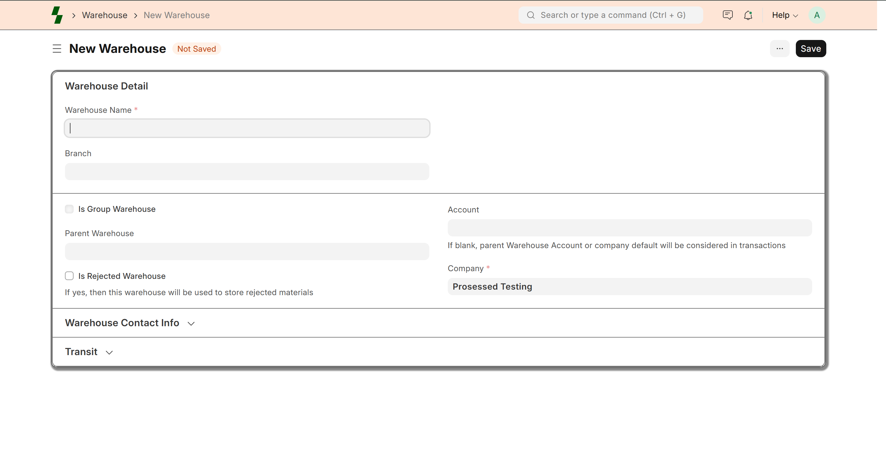 - Enter warehouse name
